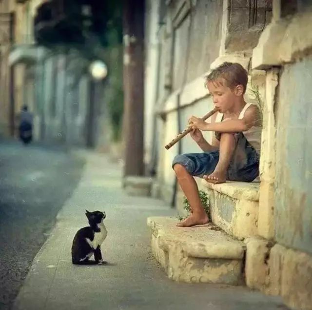 10) A boy who was learning to play the flute had no audience, but a little black cat appeared to be in love with it.