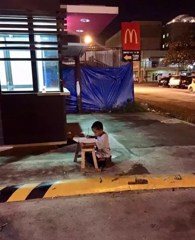 9) On the street corner at late night, a little boy squatted at a wooden table, doing his homework diligently by the light from the restaurant nearby. Five years ago, his house was destroyed by a fire and his father passed away. His mother begged for a living, but he still loved to study, despite the hardships of life.